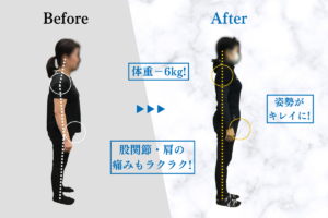 【会員様の姿勢ビフォアフター】体重マイナス6キロ!姿勢が綺麗に!股関節・肩の痛みも楽々に!